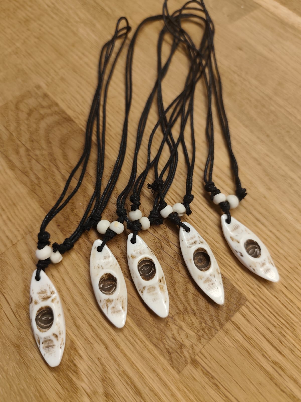 A beautifully handcrafted kayak necklace, these necklaces are handmade in Nepal and every one of them is slightly unique in shape and color. They have a strong waxed cord that is fully adjustable and decorated with 2 beads so they fit anyone!